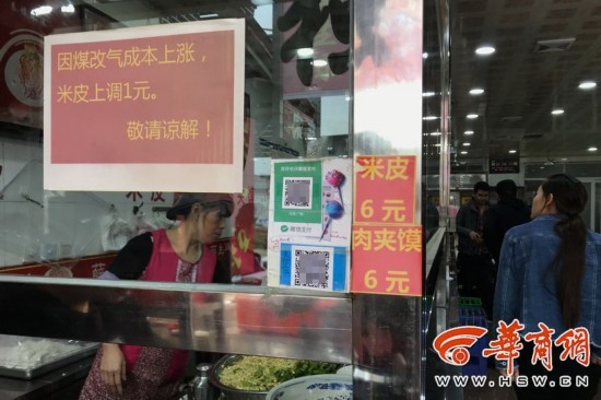 10月24日,有網(wǎng)友在華商論壇發(fā)帖:“秦鎮(zhèn)米皮、肉夾饃借煤改氣又漲成了六塊錢(qián)。”網(wǎng)友稱(chēng),“很久沒(méi)有去吃秦渡鎮(zhèn)的大米面皮了,近期路過(guò)橋西,尋了一家吃飯,吃一碗帶一碗夾了一個(gè)饃共計(jì)18元!問(wèn)饃多少錢(qián),涼皮多少錢(qián)?掌柜的說(shuō),肉夾饃、涼皮漲價(jià)了,涼皮六塊錢(qián)一碗,肉夾饃也漲價(jià)成了六塊!”網(wǎng)友稱(chēng),自己詢問(wèn)時(shí)得知“因?yàn)槊焊臍?rdquo;,在“國(guó)慶期間開(kāi)始漲價(jià)”。