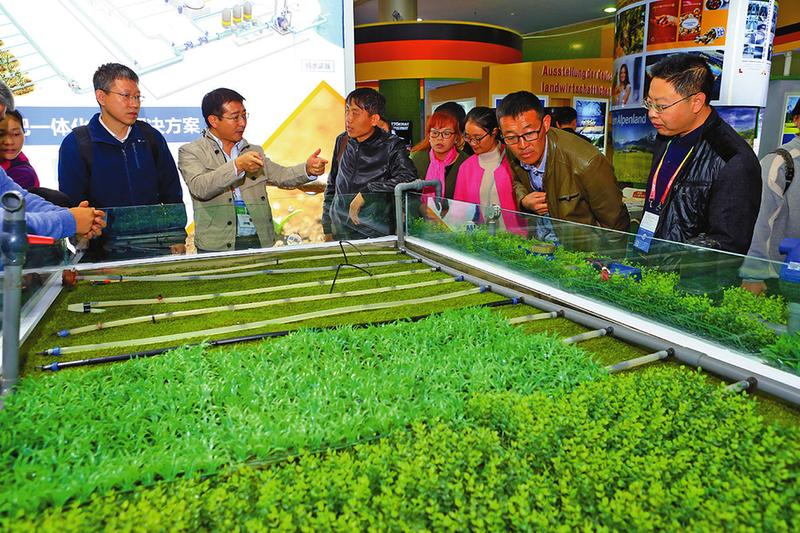 11月5日,在第24屆農(nóng)高會A館,參會者正在了解微灌、滴灌節(jié)能用水系統(tǒng)。 本報記者 安濤 劉強(qiáng)攝