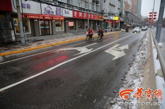 1月7日,在西安市咸寧路上,在寶馬車打滑的路段上,早上下雪后,下午已經(jīng)看不到積雪。 華商記者 鄧小衛(wèi) 攝影報道