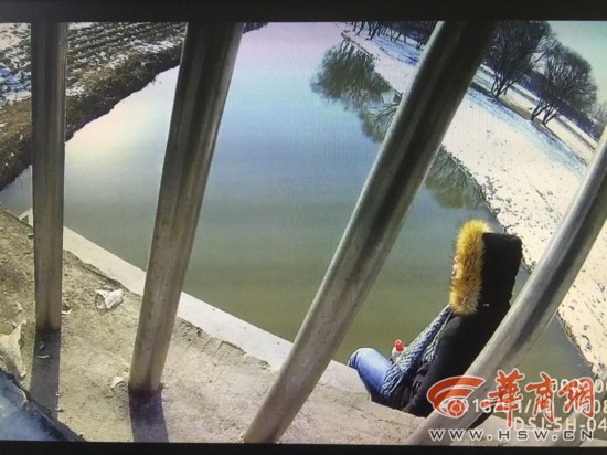 獨(dú)坐在浐河橋護(hù)欄外的鋼架上,不時(shí)拿起手邊的白酒喝上幾口,然后痛哭不止,因?yàn)槿烊箾]找到女友,男子準(zhǔn)備借著酒勁投河輕生。