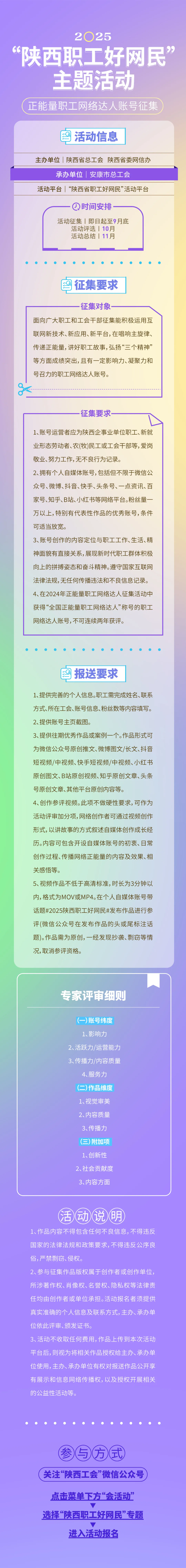 2025年“陜西職工好網(wǎng)民”正能量職工網(wǎng)絡(luò)達(dá)人賬號征集