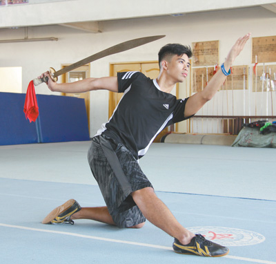 準備參加東南亞運動會的菲律賓國家武術隊隊員在進行訓練。本報記者 孫廣勇攝 |