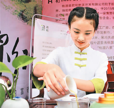 茶藝師表演桃源紅茶的沖泡技藝。 |