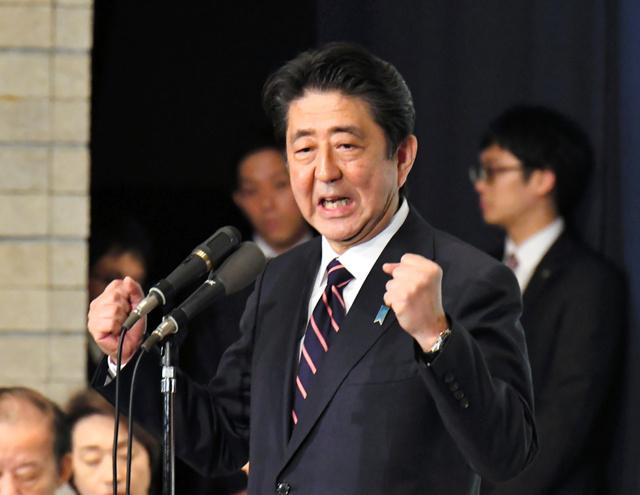 安倍晉三再次當(dāng)選自民黨總裁。(圖片來源:日本《朝日新聞》網(wǎng)站)
