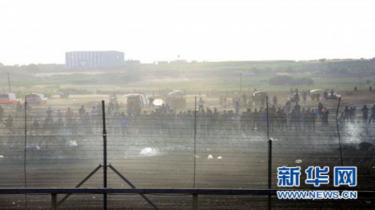 6月8日,巴勒斯坦人在加沙邊境舉行抗議游行。新華網(wǎng)記者陳文仙 攝 6月8日,約一萬名巴勒斯坦人在加沙地帶邊境的5處地方繼續(xù)舉行“回歸大游行”……