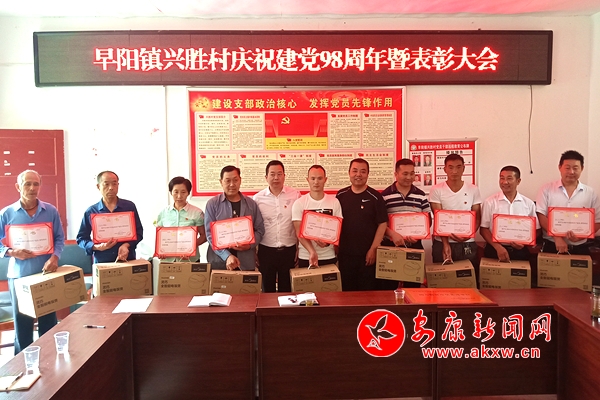 本網(wǎng)訊 (通訊員 汪丁 袁朝寧)為慶祝中國共產(chǎn)黨成立98周年,激勵廣大黨員干部永葆政治本色,凝聚決戰(zhàn)決勝脫貧攻堅(jiān)的決心和力量,6月18日,漢濱區(qū)早陽鎮(zhèn)興勝村聯(lián)合漢濱區(qū)市場監(jiān)督管理局舉行慶祝建黨98周年暨表彰大會。