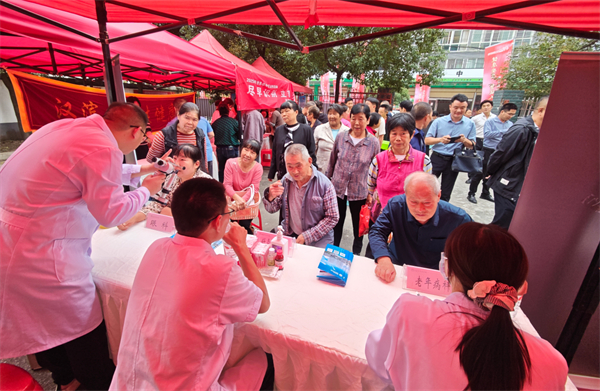 隨后的專(zhuān)家義診環(huán)節(jié),市級(jí)醫(yī)療機(jī)構(gòu)內(nèi)科、骨科、眼科等專(zhuān)家現(xiàn)場(chǎng)坐診,為居民問(wèn)診查體、答疑解惑,群眾有序排隊(duì),場(chǎng)面溫馨。互動(dòng)體驗(yàn)區(qū)同樣熱鬧,急救知識(shí)演練、八段錦教學(xué)、推拿拔罐等項(xiàng)目,讓居民在動(dòng)手實(shí)踐中提升健康素養(yǎng)。“看病、學(xué)養(yǎng)生操,還聽(tīng)了政策宣講和革命故事,這活動(dòng)太實(shí)用了!”剛結(jié)束義診的居民笑著說(shuō)。參與專(zhuān)家也表示,深入基層服務(wù)群眾、傳播健康理念,是一次非常有意義的實(shí)踐。