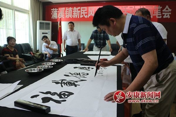 安康新聞網(wǎng)訊(通訊員 張靜)7月21日,在蒲溪鎮(zhèn)文學(xué)藝術(shù)界聯(lián)合會(huì)成立之際,新民風(fēng)進(jìn)萬家活動(dòng)書法筆會(huì)隆重舉行。漢陰縣文聯(lián)主席沈儉、各文聯(lián)分會(huì)主席及書法界大家應(yīng)邀參加,筆會(huì)現(xiàn)場書法家們即興發(fā)揮、揮毫潑墨,為蒲溪鎮(zhèn)留下不少值得珍藏的墨寶。