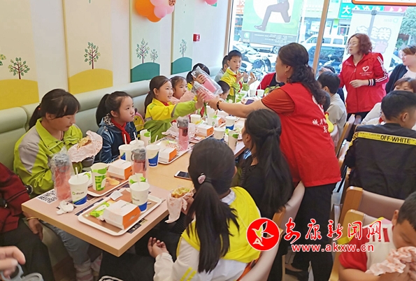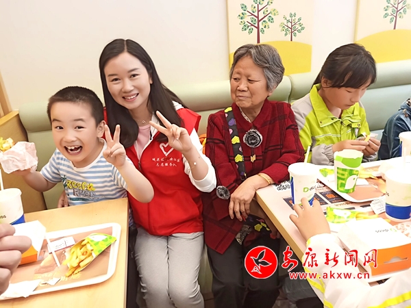 愛心親子餐,志愿者們?yōu)榧议L和孩子準備好午餐,看他們吃的津津有味的樣子,大家心里特別的高興。