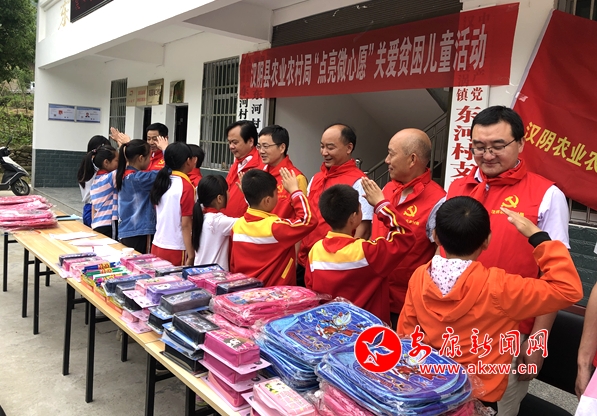 本網(wǎng)訊 (通訊員 張莉)一個(gè)嶄新的書(shū)包、一個(gè)心儀已久的文具盒、一盒書(shū)寫(xiě)未來(lái)的鉛筆……每個(gè)孩子都應(yīng)被寵愛(ài),每個(gè)夢(mèng)想都值得去灌溉。為了讓貧困留守兒童也享有同樣美好的節(jié)日,六一兒童節(jié)一大早,漢陰縣農(nóng)業(yè)農(nóng)村局領(lǐng)導(dǎo)干部前往幫扶聯(lián)系村漩渦鎮(zhèn)東河村,舉行“點(diǎn)亮微心愿、關(guān)愛(ài)貧困兒童”公益行活動(dòng),用實(shí)際行動(dòng)為貧困留守兒童送去愛(ài)心,送去歡樂(lè),給他們更多的“精細(xì)關(guān)愛(ài)”,讓夢(mèng)想、信心與愛(ài)重回孩子們的心中。