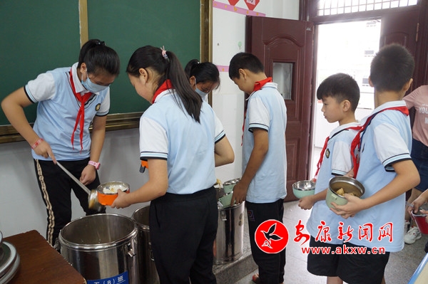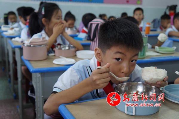 “好香啊,真好吃”,為讓學(xué)生吃得營(yíng)養(yǎng)健康,該校特意在早餐準(zhǔn)備了西紅柿雞蛋湯和熱乎乎的饅頭,午餐是雞塊燒土豆、熗大白菜和米飯,孩子們一邊品嘗著香噴噴的飯菜,一邊連連稱贊。在老師的教育引導(dǎo)下,孩子們認(rèn)真用餐,井然有序。同時(shí),該校班子成員還分別深入到各年級(jí)進(jìn)行陪餐,及時(shí)了解飯菜質(zhì)量和學(xué)生用餐情況。