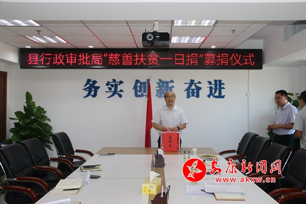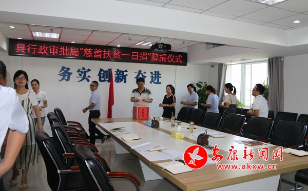 8月29日下午,在縣行政審批局的宣傳發(fā)動(dòng)下,局領(lǐng)導(dǎo)班子帶頭,全體黨員干部踴躍參與,一些因公出差或公休不能到場的同志也積極響應(yīng),慷慨解囊,委托同事代為捐款,表達(dá)自己的愛心和對慈善扶貧事業(yè)的支持。