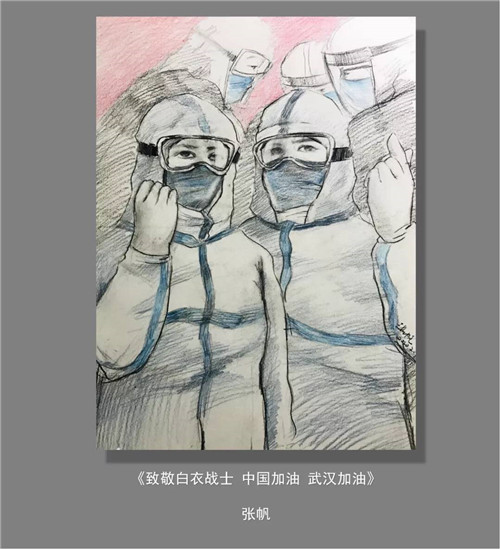 據(jù)了解,各學(xué)校師生在做好自身防控工作的同時,密切關(guān)注奮斗在抗疫第一線的英雄們,用自己的畫筆創(chuàng)作出形式多樣、豐富多彩的謳歌抗“疫”精神的作品,以發(fā)揮自己的一技之長,以書畫宣傳正確的阻斷疫情的方法,普及相關(guān)知識,呼吁人們尊重自然,保護生態(tài)環(huán)境,以書畫向最美“逆行者”們致敬。禮贊英雄,呼喚友愛,助力“抗疫”,致敬醫(yī)護人員,致敬在前線的英雄們。