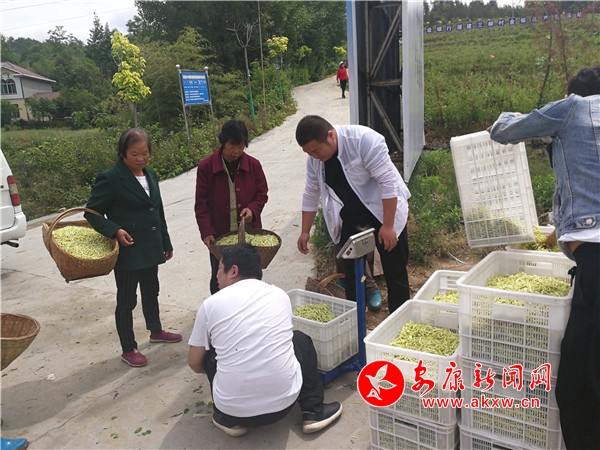 一大早,分散在金銀花基地的村民們蹲在花行之間,歡聲笑語采摘著朵朵飽滿的金銀花。“現在我們村里的金銀花到了采收期,我每天在這采摘,一天能摘10到20斤,超過15斤額外還獎勵30元,一天下來能掙100塊錢左右,能實實在在的增加我們的收入,我覺得心滿意足。”在金銀花種植基地采摘金銀花的該村貧困戶謝守琴說道。
