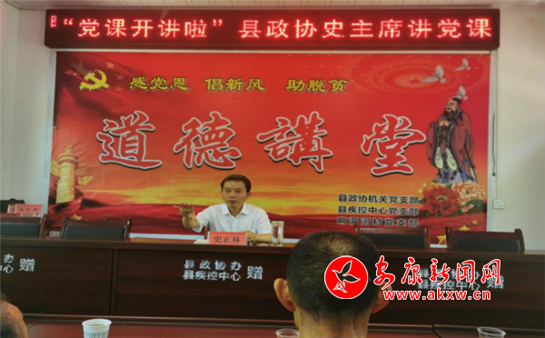 本網(wǎng)訊(通訊員 胡仕龍)為熱烈慶祝中國共產黨建黨99周年,進一步加強黨的領導,增強黨組織活力,提升黨員黨性修養(yǎng),6月30日,漢陰縣政協(xié)主席史正林、副主席王生林帶領全體機關干部,到蒲溪鎮(zhèn)響洞河村開展“支部聯(lián)建慶七一,黨群連心戰(zhàn)脫貧”主題黨日活動。