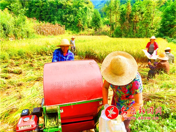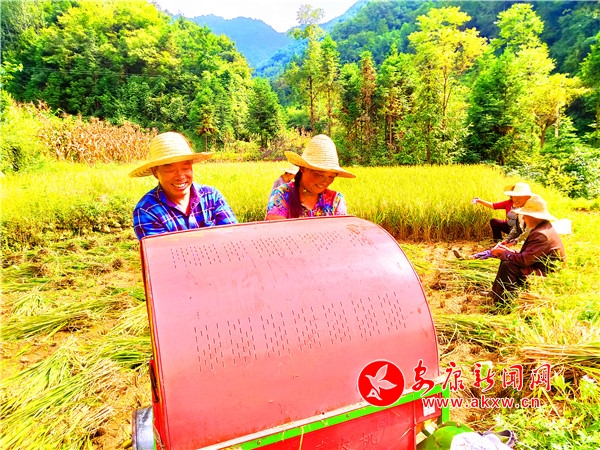 金秋時(shí)節(jié),漢陰縣轄區(qū)11萬(wàn)余畝富曬水稻陸續(xù)成熟。當(dāng)?shù)剞r(nóng)民搶抓農(nóng)時(shí)開(kāi)鐮收割,確保富硒稻顆粒歸倉(cāng),鄉(xiāng)村田野到處是一派繁忙的豐收景象。 (張輝/圖文)7te安康新聞網(wǎng)