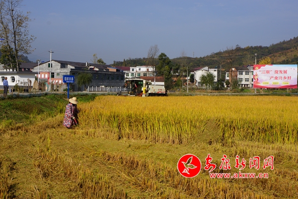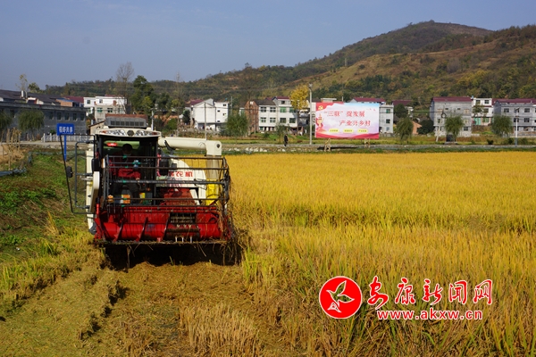 本網(wǎng)訊 (通訊員 黃小柳 晏彬)立冬之日,走進(jìn)漢陰縣雙乳鎮(zhèn)江河村,只見那金色的稻田旁鄉(xiāng)村小路蜿蜒而去,兩岸小樓拔地而起。風(fēng)兒輕拂,金黃稻穗低頭搖擺,稻香股股卷入鼻孔使人傾醉,稻田里的收割機(jī)唱著歡歌,正在稻田里來回穿梭,將沉甸甸的稻穗攬入“懷中”,為全年的辛勞付出畫上圓滿句號(hào)。