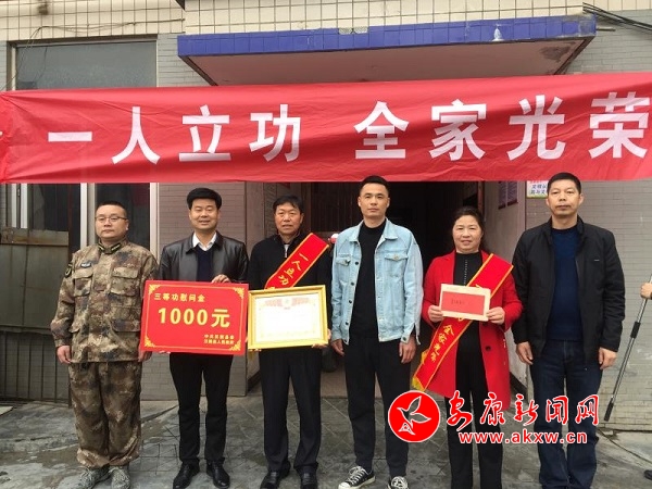 一行人先后來到城關(guān)鎮(zhèn)現(xiàn)役軍人劉家軍家中,為其送去“三等功”喜報(bào)和慰問金,對現(xiàn)役軍人劉家軍取得的榮譽(yù)表示祝賀,并詳細(xì)詢問了劉家軍家屬的生活狀況,感謝他們?yōu)椴筷?duì)、為祖國培養(yǎng)了優(yōu)秀的軍事人才,并鼓勵(lì)他們要一如既往地支持軍人在部隊(duì)安心服役,支持國防建設(shè),爭取再創(chuàng)佳績。劉家軍的父親接過這份承載著榮譽(yù)的喜報(bào),深情地表示會(huì)繼續(xù)做好軍人的堅(jiān)強(qiáng)后盾,鼓勵(lì)孩子在部隊(duì)安心服役、建功軍營。