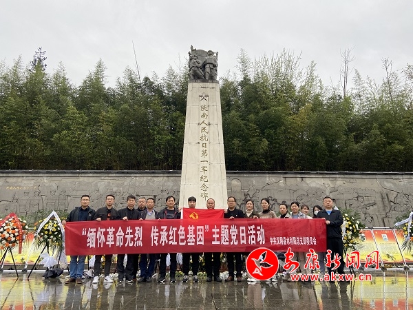 在黨史教育基地陜南人民抗日第一軍紀念碑前,全體黨員向革命先烈(輩)們致敬,頷首默哀、敬獻花束,“我志愿加入中國共產(chǎn)黨,擁護黨的綱領……”這鏗鏘有力的誓詞穿透了細雨蒙蒙。