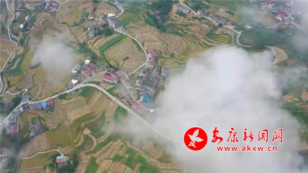 從空中俯瞰,在漫漫云海的覆蓋下,綿延數(shù)十公里的古梯田,層層環(huán)抱著山脊,從山腳盤(pán)繞到山頂,其線條如行云流水,其規(guī)模磅礴壯觀,與青山相互交融,盡顯自然和諧。走在田間的小道上,稻香撲面而來(lái),粒粒飽滿的稻穗隨風(fēng)搖曳,村民們正搶抓晴好天氣,忙著收割、打粒、裝袋。放眼望去,金黃的稻田、翠綠的山巒和勤勞的村民勾勒出一幅優(yōu)美的豐收畫(huà)卷。