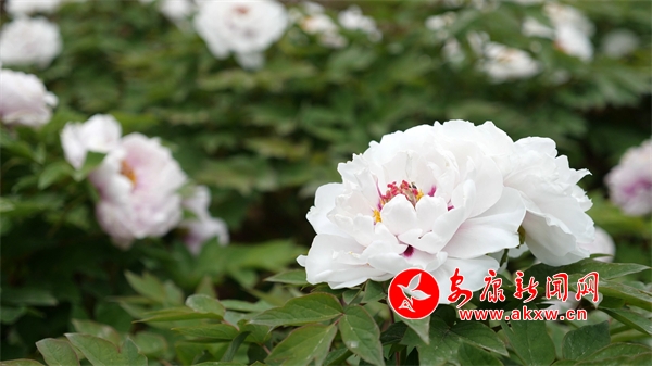 走進(jìn)牡丹園中,一朵朵牡丹花開正艷、絢麗多彩,陣陣花香沁人心脾,令人陶醉。從空中俯瞰,五顏六色的牡丹花次第開放,妖嬈的花朵掩映在綠色的枝葉中,一團(tuán)團(tuán),一簇簇,開得甚是熱鬧,可謂“百花”齊放、香氣四溢。走近細(xì)看,白牡丹綻開著白色的花瓣,雪白多層花瓣中心吐露出金蕊,素雅,端莊;紫牡丹花瓣重疊,雍容華貴,絢麗奪目;粉牡丹恰似少女的臉龐,嬌艷欲滴,煞是可愛!灼灼花海中,游人的嘖嘖驚嘆聲不絕于耳,大伙紛紛拿出手機(jī)定格這壯美的牡丹圖。