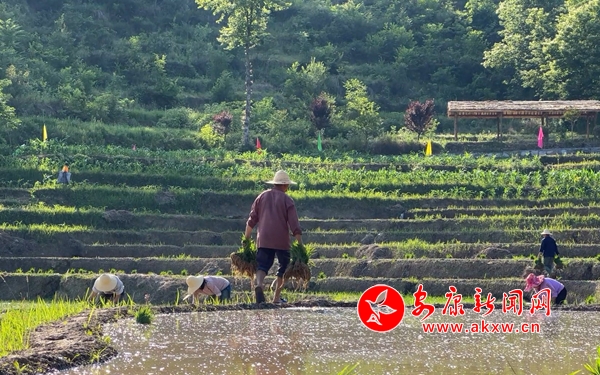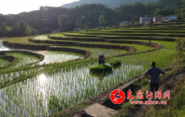 放眼望去,層層梯田披上了一襲綠色的新裝,微風吹過,秧苗輕輕搖擺,蕩漾起無限生機。在持續(xù)兩周的插秧期,村民們每天從早上六點一直忙到下午七點鐘才收工,“手把青秧插滿田”的農(nóng)忙景象與大大小小形狀各異的水田,構(gòu)成一幅詩意盎然的田園風光圖。tPq安康新聞網(wǎng)
