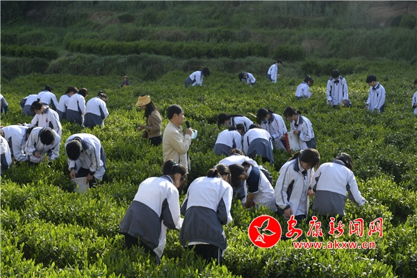 推廣“田間課堂”,將勞動教育實踐路徑延伸到鄉(xiāng)村田間。城關(guān)鎮(zhèn)三元村茶園是漢陰中學(xué)校外勞動教育實踐基地,4月8日清晨,茶園基地迎來了一群特殊的“采茶人”,正是漢陰中學(xué)師生代表們挎著采茶裝備,穿梭在茶園間,指尖輕捻、摘取嫩芽,頓時打破了茶園清晨的寧靜。
