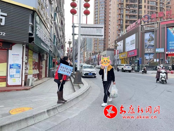 “您好,我這里有口罩給您,請(qǐng)你戴好口罩。”“請(qǐng)把口罩戴好,把鼻子蓋住。”12月7日下午,縣委宣傳部6名干部身穿紅馬甲前往負(fù)責(zé)包聯(lián)的小區(qū),向住戶宣傳規(guī)范佩戴口罩知識(shí)。在漢陰大街小巷,隨處可見(jiàn)身穿紅馬甲的志愿者們,他們有的手拿小喇叭,有的手持“戴口罩 不扎堆”“請(qǐng)規(guī)范佩戴口罩”等提示牌,勸導(dǎo)路上的民眾規(guī)范佩戴口罩。