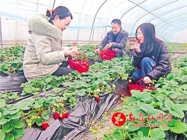 “這幾個(gè)大棚都是種的草莓,每天都有訂單送往縣城水果店,春節(jié)以來,有很多游客前來采摘,銷路基本不愁…… ”蔬果種植戶倪小寶看著滿園的“金”果果開心地介紹道。