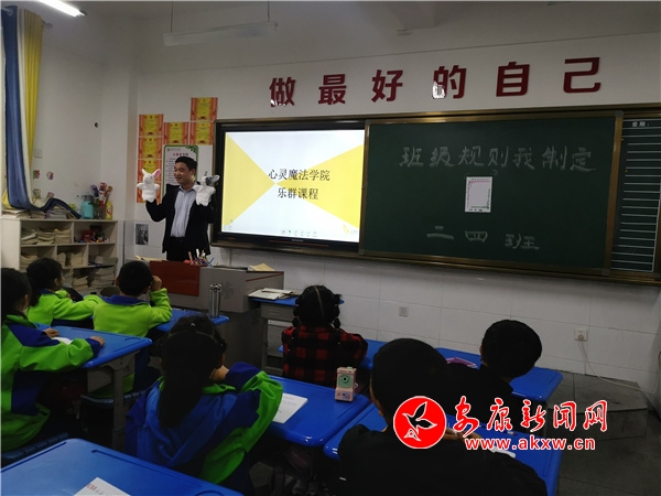 本網(wǎng)訊(通訊員 徐雯雯 鐘自坤)5月10日,漢陰縣鳳臺小學(xué)班主任郭老師拿著兩只小兔子玩偶,在講臺上聲情并茂地演繹心理故事,臺下的孩子們臉上掛著開心的笑容。這是鳳臺小學(xué)一節(jié)主題為《我的好朋友》的心理健康課程。