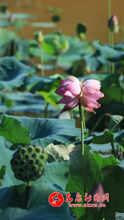 “我昨天早上在塘子里采蓮蓬的時候,突然發(fā)現(xiàn)了一株并蒂蓮,感覺非常的驚奇,然后在網(wǎng)上查閱資料,得知它的發(fā)生概率是十萬分之一,于是我就拍了些照片發(fā)到朋友圈里,我從小到大大大小小的荷花都見過,而且這個塘子已經(jīng)種了九年了,在現(xiàn)實生活中這種并蒂蓮是第一次見到。”據(jù)并蒂蓮的發(fā)現(xiàn)者況濤回憶,難得一見的并蒂蓮是7月22日發(fā)現(xiàn)的,在陽光照耀下,并蒂蓮一枝獨秀,它的一枝花莖上長出兩個大小相似的粉紅色花苞,嬌艷欲滴,格外搶眼。