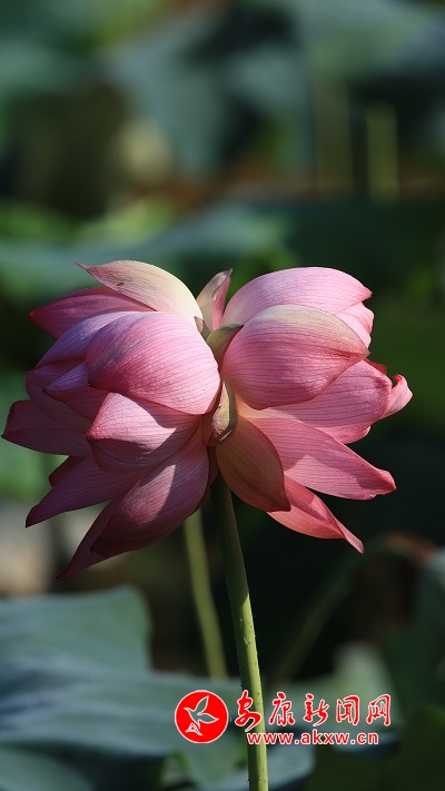 本網(wǎng)訊(通訊員 王建霞 劉東)一枝花莖有兩個花蕾,可謂可遇不可求。近日,漢陰縣蒲溪鎮(zhèn)芹源農(nóng)莊的荷塘內(nèi)就出現(xiàn)了一朵并蒂蓮,其生成的幾率僅十萬分之一,屬花中珍品。