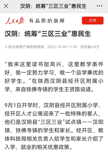 2022年7月,漢陰縣制定出臺(tái)了《統(tǒng)籌“三區(qū)三業(yè)”推進(jìn)教育優(yōu)質(zhì)均衡發(fā)展試點(diǎn)方案》,探索推行學(xué)區(qū)園區(qū)社區(qū)聯(lián)動(dòng)工作機(jī)制,全力實(shí)現(xiàn)保障學(xué)生學(xué)業(yè)、家長(zhǎng)安心就業(yè)、家庭安居樂業(yè)(簡(jiǎn)稱“三區(qū)三業(yè)”),保障民生需求,促進(jìn)全縣教育、就業(yè)、安居高質(zhì)量發(fā)展。該試點(diǎn)方案明確了加強(qiáng)學(xué)區(qū)、園區(qū)、社區(qū)建設(shè)的9條措施。
