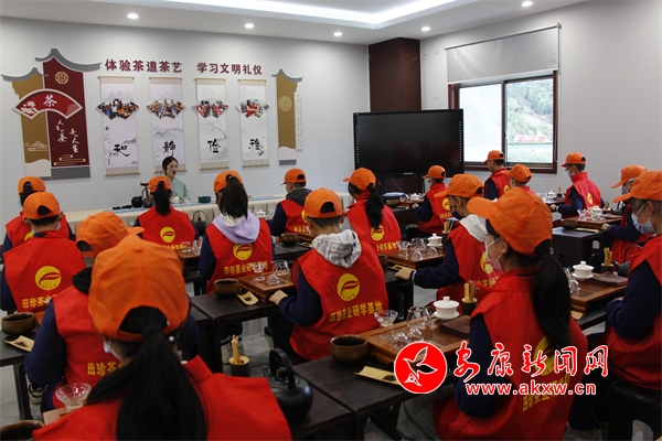 研學活動安排了融合集體主義、勞動實踐、文明禮儀、中國茶文化等教育于一體的豐富多彩的課程。學生通過參觀絞股藍茶葉博覽館、聆聽茶知識講座、體驗茶藝表演等活動,從識茶、采茶、制茶、泡茶、品茶、敬茶的一舉一動中了解我國茶文化的豐富內(nèi)涵。學習手工制茶、自己動手表演茶藝、設(shè)計茶葉logo、繪畫“茶”之美等活動,讓學生們體會到勞動創(chuàng)造美好生活,培養(yǎng)學生的創(chuàng)造力、觀察力、想象力,感受生活中的藝術(shù)美。整理內(nèi)務(wù)、文明用餐、光盤行動等系列活動,讓學生們在勞動實踐中學會自理、自立,增強學生動手能力和獨立自主的生活能力。