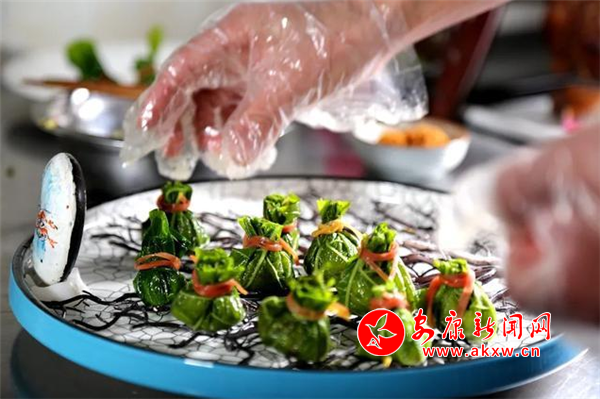 在景區(qū)內(nèi)有一種特色蠶桑宴——“炸桑葉、涼拌桑葉、桑葉丸子湯、桑葉漿水面、桑葉餃子饅頭、桑葉涼粉、桑葚甜酒、炸蠶蛹、桑葉炒雞蛋、桑葉茶、桑葚酒、桑園辣子雞……”幾十道“桑葉”主題特色美食讓游客們垂涎欲滴。一盤炸桑葉10來片,能賣到18元,平均一片就達(dá)到近兩元,其他菜品單價(jià)也是28-88元之間不等,與1200斤桑葉喂養(yǎng)一張蠶賣2500元的好價(jià)錢相比較,經(jīng)濟(jì)效益要高幾百倍。